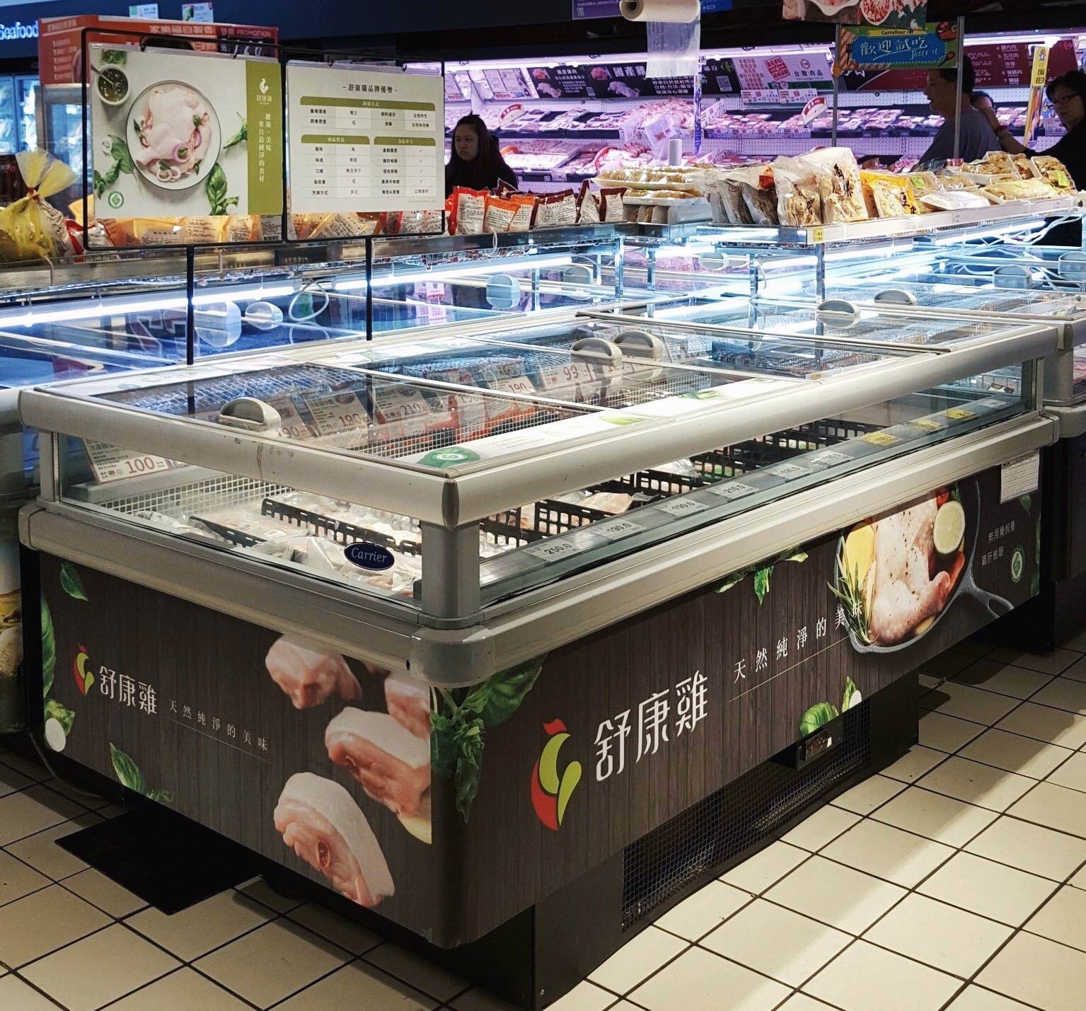 到各上架分店,請找舒康雞品牌冷凍臥櫃(如圖)↓